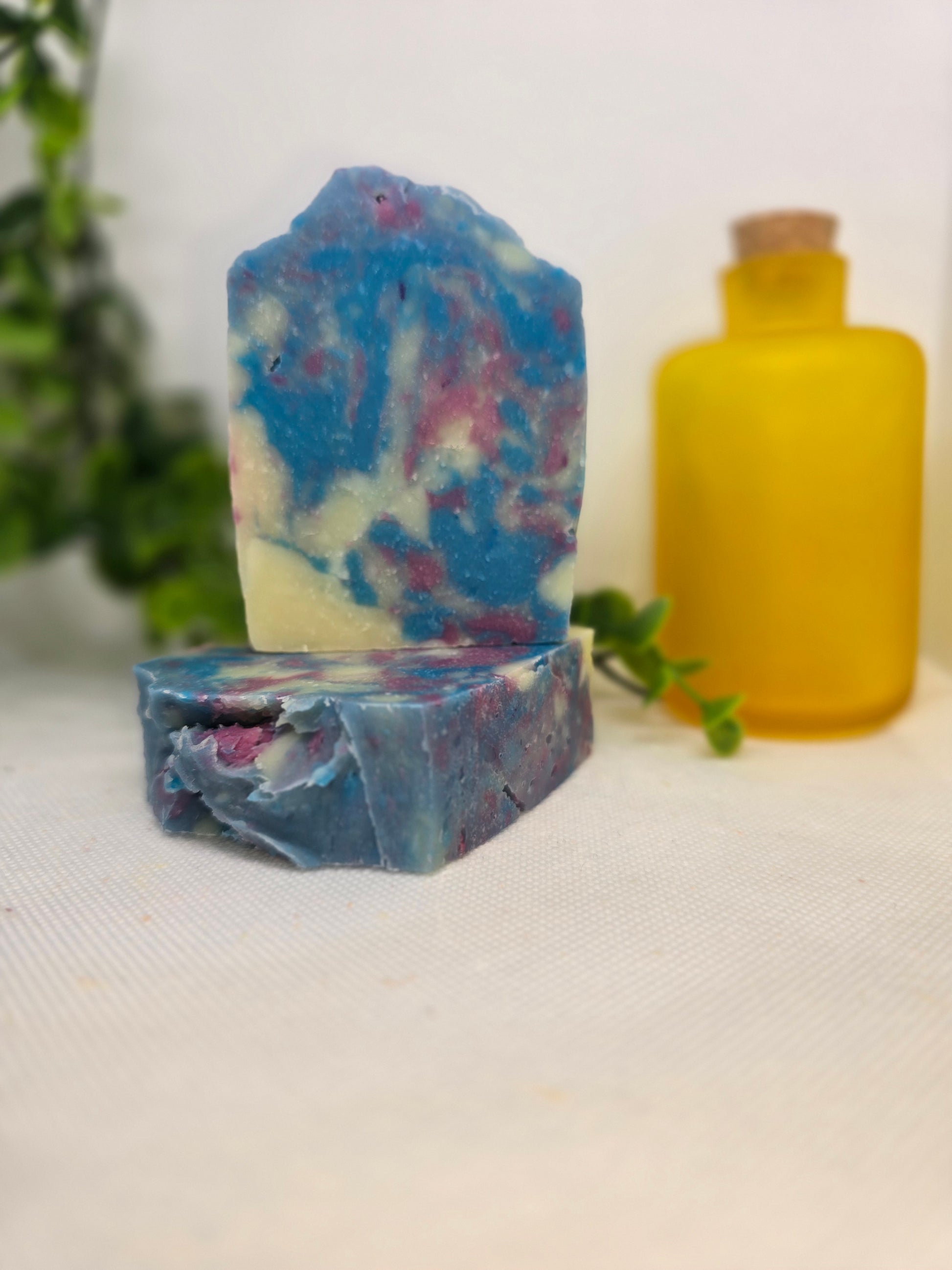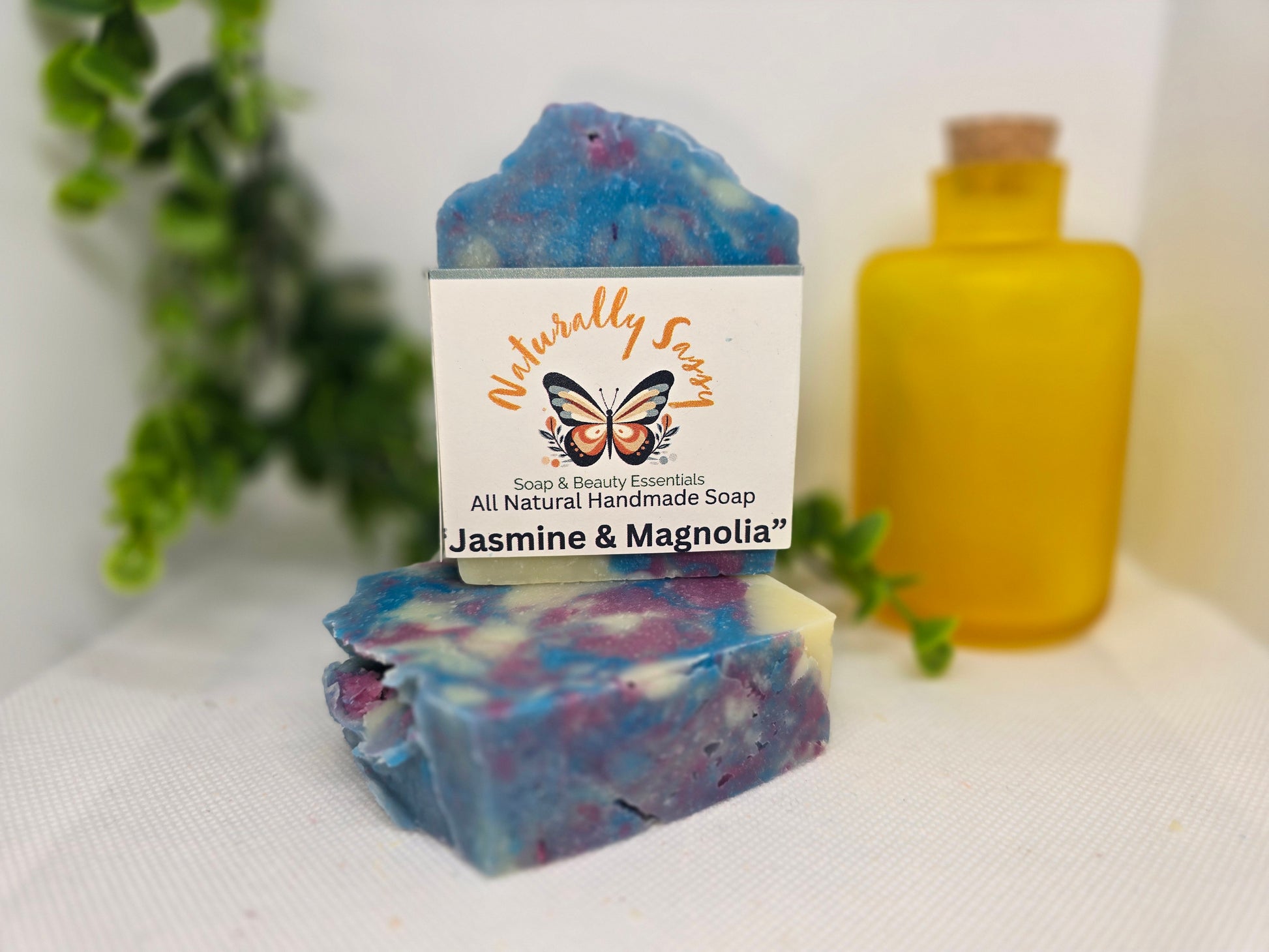 Experience the delicate and refreshing floral fragrance of Jasmine & Magnolia with our handmade cold processed soap. Crafted with nourishing ingredients like Olive Oil, Coconut Oil, Castor Oil, Grapeseed oil, Tallow (beef) and Shea butter, this soap will leave your skin feeling moisturized and revitalized. Infused with Essential oils and vibrant shades of Blue, Pink, and White for a beautiful and luxurious bathing experience.