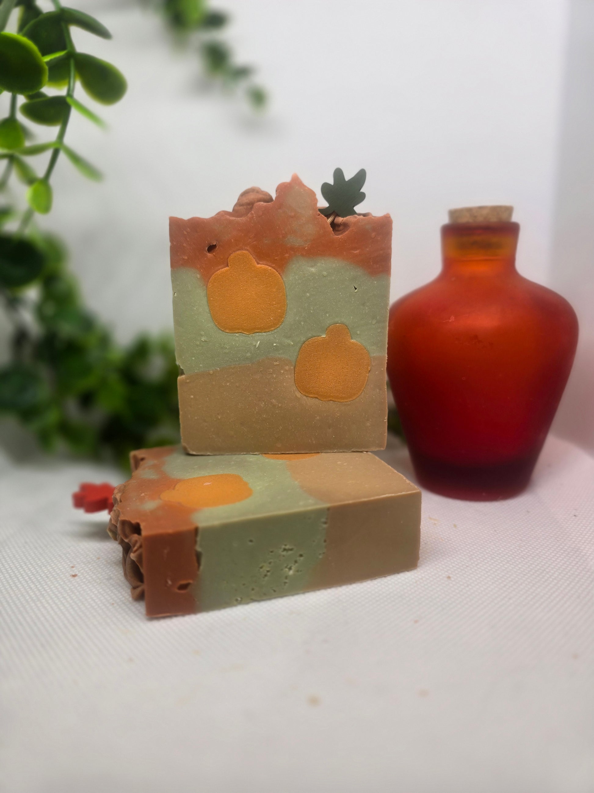 Experience the warm and comforting scents of pumpkin spice and cinnamon with our Pumpkin Spice Leaves. Infused with nourishing olive oil, coconut oil, tallow, castor oil, and shea butter for a creamy and smooth feel. Unwrap the leaf decor before use and let the bar dry between uses. Cold processed.
